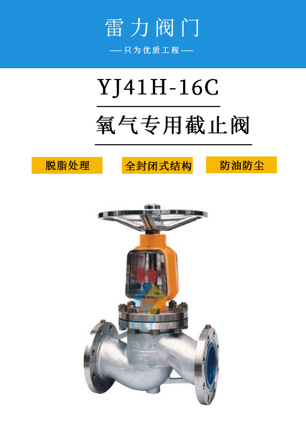 {氧氣專用截止閥 Y J 41氧氣專用閥門是根據(jù)氧氣管網(wǎng)運(yùn)行特點(diǎn)以及考慮氧氣介質(zhì)的 易燃易爆的特性 ,以安全可靠和性能優(yōu)越為設(shè)計原則,并參照中華人民共和國冶金工業(yè)部制定的《氧氣