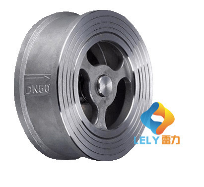 對夾式止回閥是一種通用單向流體閥門。其重量輕,體積小,容易安裝在法蘭之間,閥門內部由兩個半圓彈簧和板面組成,用銷子固定在閥體上彈簧形變使閥板關閉,流體壓力又使其開啟彈簧的形變很快,這樣能保護管道免受水錘破壞。